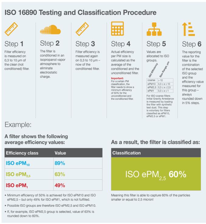 ISO 16890, 產品過濾效率介于中等到高等之間的,